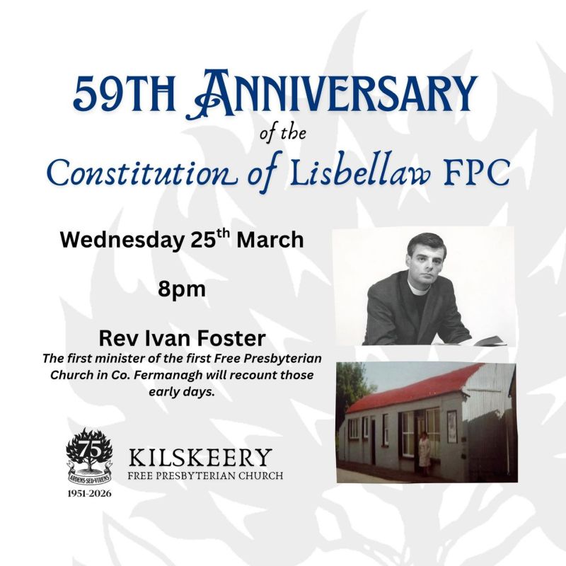 59th Anniversary of the Constitution of Lisbellaw FPCpreached by Rev. Ivan Foster on Wed Mar 25, 2026