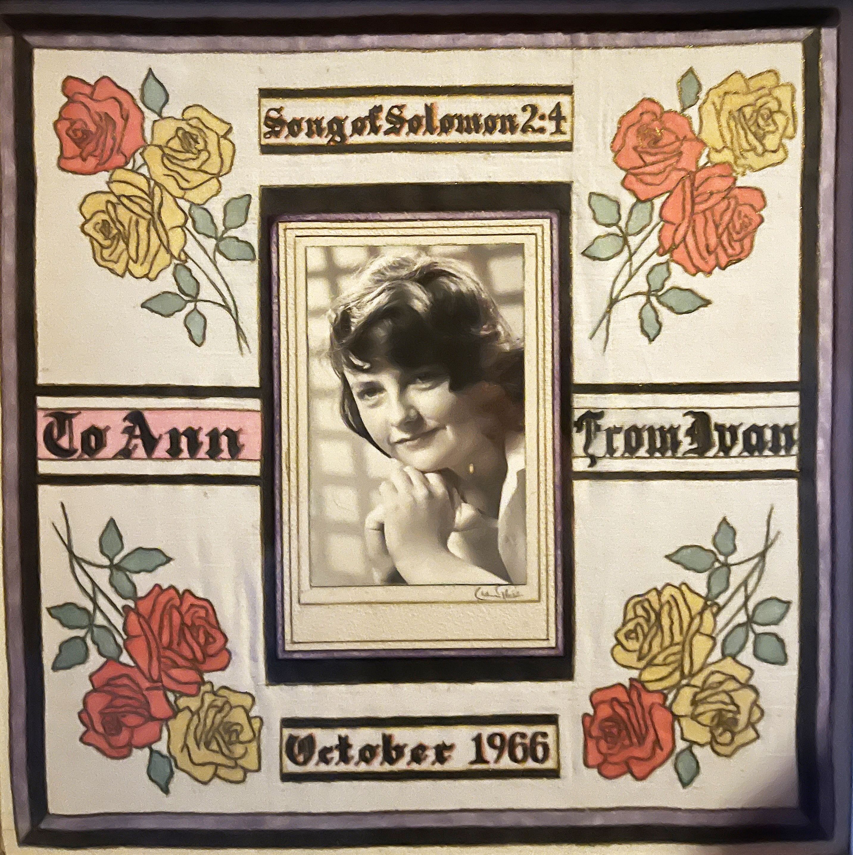 While he was in prison, Rev. Foster was given this precious item by one of the men who was in jail for burglary. That man had taken a white hanky and decorated it with coloured inks, and mounted a picture of Ann, Rev. Foster's girlfriend and now his late wife. This item was given to Ann on her 20th birthday, a few days after Rev. Foster was released from prison on 23rd October, 1966.