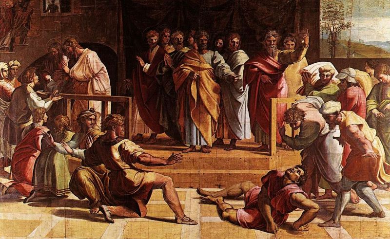 The Death of Ananias (Acts 5: 1-5); Raphael, 1515, tempera and paper on canvas