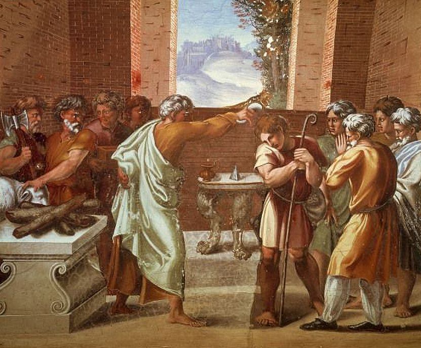 “And Jesse said unto David his son, Take now for thy brethren an ephah of this parched corn, and these ten loaves, and run to the camp to thy brethren; and carry these ten cheeses unto the captain of their thousand, and look how thy brethren fare, and take their pledge. . . And as he talked with them, behold, there came up the champion, the Philistine of Gath, Goliath by name, out of the armies of the Philistines, and spake according to the same words: and David heard them. And all the men of Israel, when they saw the man, fled from him, and were sore afraid. And the men of Israel said, Have ye seen this man that is come up? surely to defy Israel is he come up: and it shall be, that the man who killeth him, the king will enrich him with great riches, and will give him his daughter, and make his father’s house free in Israel. And David spake to the men that stood by him, saying, What shall be done to the man that killeth this Philistine, and taketh away the reproach from Israel? for who is this uncircumcised Philistine, that he should defy the armies of the living God?” Verses 17-18, 23-26.